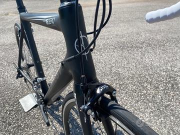 Negozio vende bici da corsa Fondriest TFZero in taglia 56, appena montata nuovissima!!! Solo € 1.200,00 TELAIO: Fondriest in carbonio con fibra a vista FORCELLA: Carbonio TRASMISSIONE: Shimano 105, 11v, 11-28t GUARNITURA: Shimano 105, 50-34t FRENI: Shimano 105 RUOTE: MICHE in alluminio PNEUMATICI: Michelin Lithion4 700x25 ATTACCO: Alluminio MANUBRIO: Alluminio REGGISELLA: Alluminio
