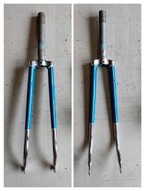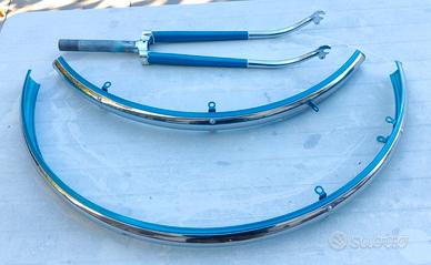 Forcella e parafanghi bici da uomo vintage anni 70-80 azzurro metallizzato/cromo