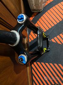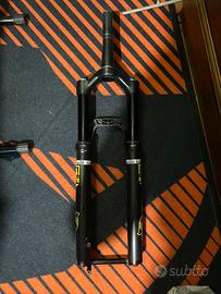 Vendo per inutilizzo forcella FOX 34 completamente rifatta internamente, la cartuccia originale e’ stata sostituita con quella della Factory , praticamente è una factory senza trattamento kashima ma con gli steli neri . Tuning interno effettuato da DB bike , molto sensibile ai piccoli urti e progressiva nella parte finale. Si può portare tranquillamente a 120 di escursione.