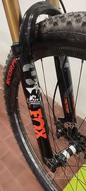 forcella Fox 34 kashima con esclusione 110 e perno boost manettino per bloccaggio al manubrio 3 posizioni canotto tagliato a 17 ottime condizioni revisionata simile a rock shox Sid birgth formula brain ohlins XC maeathon