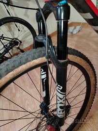 Usata come nuova, forcella mtb fox Rhythm con steli da 32, escursione 110 3 blocchi, solo forcella con asse, senza blocco manubrio, tagliata a 16 cm