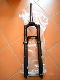 È proprio nuova!!, cannotto intero, neanche un graffio. 150mm di escursione. La vendo per errore di acquisto fatto su subito e non posso fare reso, il cannotto è largo alla base 1,8 pollici cioè 45mm. Suggerisco di leggere bene le caratteristiche sull'app Trail head tramite il nr di serie, per non commettere il mio stesso errore. Pagata 300€, compreso spedizione, quindi non è trattabile. Non ha la confezione originale! c'è solo la forcella, nient'altro.