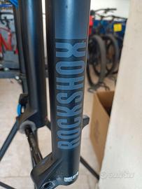 Forcella rock shox Judy TK da 29"usata, boost 15x110, corsa da 130 mm, lunghezza canotto 210 mm, blocco su forcella.