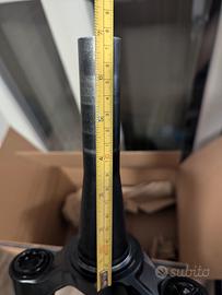 - forcella rockshox domain r 170 mm per ruote da 29" con canotto sterzo tagliato a 17,5 cm, perno boost incluso. Come da foto è per serie sterzo tapered maggiorata: parte alta standard da 1-1/8" (28,6 mm) e parte bassa maggiorata rispetto a standard da 1,8" (46 mm) invece di 1-1/2" (40 mm). Revisionata 1 anno fa e ferma da allora. tenuta bene e in scatola.
