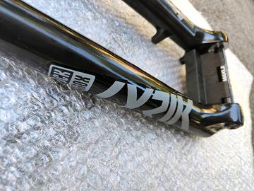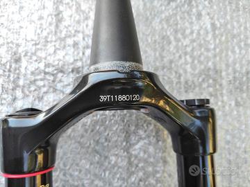 vendo per cambio progetto forcella Rockshox Lyrik Select+ per ruota da 29'' steli con finitura Fast Black da 35mm Foderi in magnesio escursione 150mm Damper Type: Charger 2.1 RC Spring: DebonAir Damping adjustments: Extl rebnd, low speed comp Volume reducer: 2/5 Tokens Canotto sterzo conico 1.8" Tapered (ATTENZIONE, non 1.5") asse 5x110mm BOOST™ (incluso asse Maxle Stealth) offset: 44mm (29") Axle to Crown: 561mm Crown OD: 69mm Max Tire Diameter: 770mm Max Tire Width: 81mm Maximum Rotor Size: 220mm peso: 2021g E-Bike Approved Forcella nuova e mai montata. Controllate la compatibilità col vostro telaio. (posso fornire adattatore per telaio con tubo sterzo conico "classico" ovvero calotta da inserire nella parte inferiore con parte a vista)