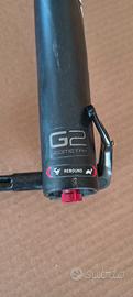 Forcella Rockshox Recon Gold RL, escursione da 100mm, perno boost 110, in buone condizioni generali con normali segni di usura, venduta senza comando remoto, cannotto tagliato a 15,5cm
