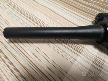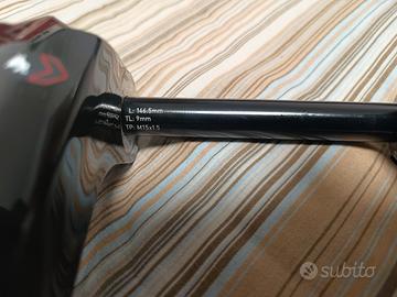 Forcella nuova mai montata completa di comando remoto.Attacco conico della lunghezza di 225mm,perno passante, sblocco 3 posizioni, escursione 100mm.Prezzo trattabile ma di poco.