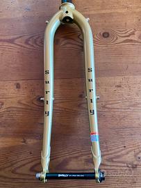 Forcella nuova inclusa in kit telaio che ho comprato per assemblare la nuova bici con altra forcella, tolta dalla conferzione solo per fare le foto.