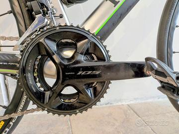 Vendo Formigli GTF taglia 56 freni a disco. Colorazione Argento McLaren nera con accent verdi. Condizioni ottime, mai cadute. Manutenzione regolare. Gruppo Shimano 105 Di2 12v R7170 con guarnitura 172.5mm 50/34 e cassetta 11/34. Ruote Mavic Ksyrium Pro UST Disc con copertoni Michelin Pro4 Endurance Manubrio FSA SLK Compact 42cm Sella Fizik Arione R3 Versus Pedali e portaborraccia non inclusi Ritiro a mano zona Vezza d'Oglio (BS) o Montevecchia (LC)