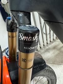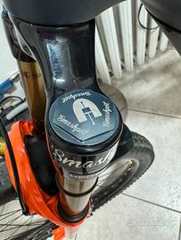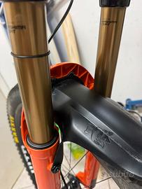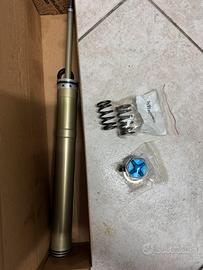 Spettacolare Fox 38 grip2 trasformata a molla col moglior kit sul pianeta, Vorsprung Smashpot V2. Tutto acquistato nuovo e spesi oltre 1.600 euro per la forca kittata così. Performance imbattibili, attualmente monta una molla dura per peso di 105 kg, ma con circa 70 euro potete acquistare una molla adatta al vostro peso e modificare il kit su misura. Vendo causa smembramento bici per vendita. Cannotto lungo 21 cm, 29 pollici.
