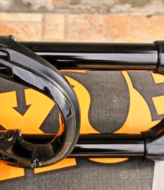 Vendo Fox 38 performance Grip per ruote da 29" con escursione di 170mm montata su Canyon torque e usata per qualche uscita. La forcella é stata usata 3 volte, infatti non presenta alcun danno estetico né sugli steli né sui foderi, inoltre era stata pellicolata con le pellicole Ridewrap. Canotto tagliato a 200mm e anche se non presente in foto é completa di perno Fox.