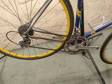 Telaio Dedacciai Materiale : acciaio 25 Cr Mo4 micro alloyed Tubi alleggerati a sezioni variabili Taglia: grande Transmisione: 2 x 8 Campagnolo Neumatici: 700c x 23 mm Pneumatici Continental (usati) Freni Campagnolo avanti Pedivelle 170 mm Guarnitura 39-52