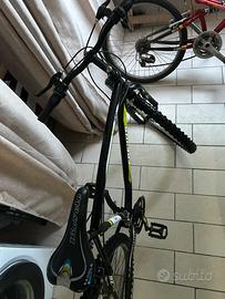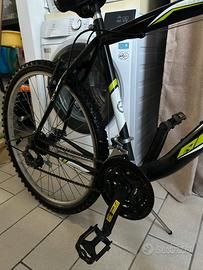 Vendo mountain bike 26” colore nero con dettagli verde fluo, in buone condizioni generali e perfettamente funzionante.