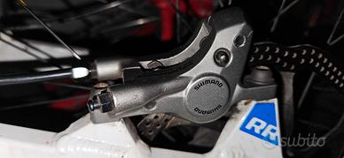 Freni shimano deore lx. olio minerale. Un paio di pastiglie dei freni nuove in regalo. Il freno anteriore è in ottime condizioni, freno posteriore stride quando si frena.