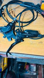 coppia di freni sram code r completi di pastiglie ,sia i freni che le pastiglie sono nuovi mai usati piu un disco sram da 200 sostituti dalla bici prima di lasciare il negozio ...ripeto freni nuovi mai usati ,spedizione o consegna a mano