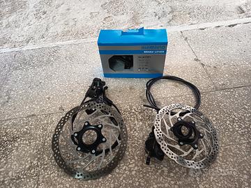 Vendo impianto freni a Disco Shimano, completo di dischi leve (di cui la.leva dx completamente nuova )