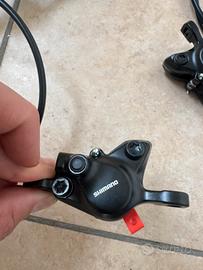 Salve vendo freni shimano mt-200 completi di pinze tubi e pompe anteriori e posteriori. Sono stati smontati da bici nuova comprata 1 settimana fa e mai usati.
