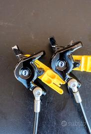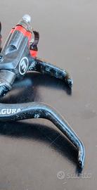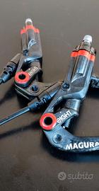 Freni MTB Magura MT8, Leva in Carbonio, 2 Pistoni per pinza Freno, Pastiglie Freno Nuove, Spiegati; Usati in ottime condizioni (Piccolo sbuccio sulla guaina Posteriore senza compromettere la frenata o fuoriscite di Olio)