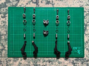 In ottime condizioni. Smontati, puliti (ad ultrasuoni) e revisionati (con nuovi o-ring) Incluso nel kit: - 2x Paul Moon Unit black - 1x Nitto AS-2 reggi cavo posteriore per collarino stringisella (6,3 cm) - 1x reggi cavo generico anteriore per forcella, con regolazione