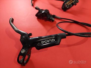 Vendo freni Sram Guide R a 4 pistoncini per MTB e E-mtb, frenata potente e modulare, freni usati e in buone condizioni, fermi da un po vanno spurgati, regolazione apertura leva, pastiglie semi-metalliche nuove, lunghezza guaina 67-135mm.