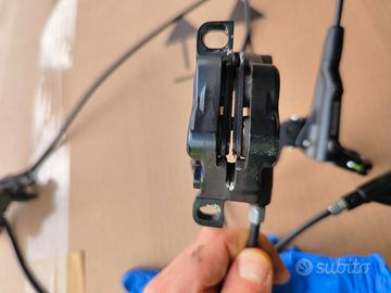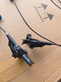 Coppia freni Shimano deore br-mt520 a 4 pistoncini, con relative leve e tubi come in foto. Usati 2 stagioni e ben funzionanti.