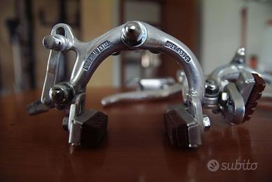 Coppia pinze freno mod.51 brevetto 453949, direi fondo di magazzino o usate pochissimo, in ottime condizioni, con pattini Universal (dell'epoca?).