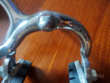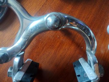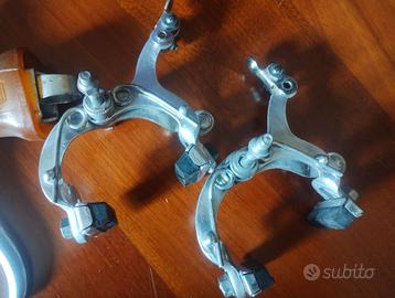 Sistema frenante Universal completo, adatto al restauro di bici da corsa storiche. Leve freno complete di gommini paramani in buone condizioni, pattini dei freni non originali. A chi fosse intenzionato all'acquisto, posso fornire altre foto.