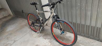 vendo per inutilizzo Mtb FRM Be Active biammortizzata perfettamente funzionante , leggerissima in alluminio taglia m/l va bene per una persona fino a 175cm , montata come da catalogo , mozzi ricavati dal pieno , cerchi Ritchey leggerissimi , usata pochissimo con ammortizzatore posteriore nuovo.