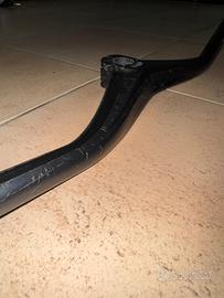 Con i suoi accessori. Compatibile CR (passaggio cavi interno), consente di far passare internamente fino a 5 cavi o tubi, ottenendo cosi una soluzione pulita e leggera. SPECIFICHE - Utilizzo: MTB XC - Materiale: Carbonio - Lunghezza manubrio: 780 mm - Lunghezza attacco: 65mm - Inclinazione: -12° - Rialzo: 5 mm - Back sweep: 9° - Up sweep: 5° - Peso: 280gr. - Colore: Carbonio