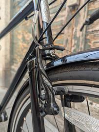 Freni v-brake, ruote 700c a 36 raggi, copertoni Vittoria Randonneur 40mm.