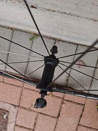 Ruote Fulcrum Racing 5 complete di copertoncini Vittoria Rubino usati per un paio di uscite e camere. Corpetto Shimano 10V. Tutto in ottime condizioni, usate veramente poco. Preferibilmente consegna a mano.