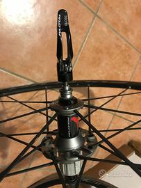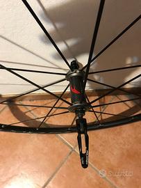 Fulcrum racing zero, ruote da corsa molto leggere ~1490 g, sono il modello piu’ recente (C17) per freni normali con tecnologia 2-Way Fit, che permette l'uso sia di copertoncini tradizionali che di tubeless. Mozzi in carbonio con cuscinetti Ceramici USB (Ultra Smooth Bearings). ruota libera shimano 11v