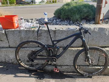 Lo stato della bicicletta è ottimo, il latte dei tubeless si è seccato e quindi le gomme sono a terra. Per il resto il telaio è in ottime condizioni, un cerchione presenta una lieve ammaccatura.