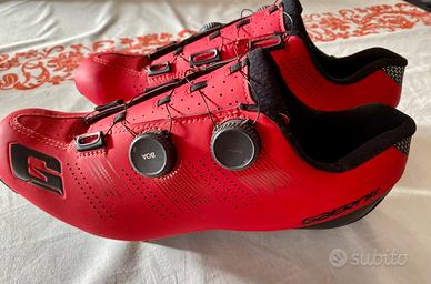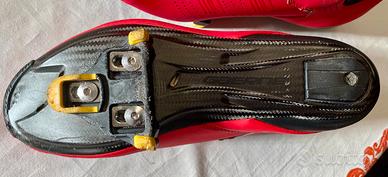 Ultra leggera e ultra sottile, la trama in fibra di carbonio ottimizzata assicura che ogni watt di potenza venga trasferito ai pedali. La stabilità del piede è aumentata grazie alla forma della suola nella zona dell'arco plantare. Quattro prese d'aria garantiscono la ventilazione all'interno della scarpa. La suola ha un inserto antiscivolo nella punta e un fondello intercambiabile nella parte posteriore. Le opzioni di posizione della tacchetta sono state aumentate di 9 mm rispetto alla suola precedente. Una scala di allineamento stampata sulla suola permette di memorizzare la posizione della tacchetta. Eccellente indice di rigidità di 12.