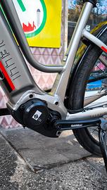 Vendo bici NUOVA elettrica a motore centrale Garelli Trekking Imago TK4 in alluminio con la forcella ammortizzata SR Suntur, motore Oli EDS 250w da 85Nm, con la batteria da 540Wh, impianto frenante idraulico Zoom, reggisella ammortizzato