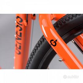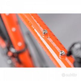 Gravel in alluminio con forcella in acciaio, ideale per fare gravel e viaggi grazie alla presenza di numerosi attacchi. È montata con il gruppo Shimano Claris 2x8 con freno a disco meccanico ad azionamento a cavo, guarnitura Shimano 50/34 e pacco pignoni 11/34. Disponibile in pronta consegna in tg. M e nella colorazione come in foto