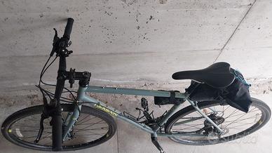 Ottime condizioni, Misura L , bicicletta da gravel e bikepacking con telaio e forcella in acciaio, gruppo Shimano Sora 2×9 velocità, freni a disco, predisposizioni per montaggio portapacchi anteriore e posteriore. Versione con flat bar. Ottimo compromesso per le strade bianche , fuori strada e asfalto, perfetta per il bikepacking, ma anche per il tragitto