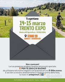 ROTOEBIKE - TRENTO www.rotoebike.it info@rotoebike.it Rivenditore Ufficiale con assistenza tecnica diretta FLYER - GHOST - MONDRAKER - RAYMON – SUPERIOR TRENTO - Via Marchetti, 24 Tel. Mostra numero Offerta valida per pagamento con bonifico o contanti +3% per pagamenti elettronici +139 euro per spedizione assicurata Prezzo di listino Euro 2.899,00 Nostra Offerta 1.990,00 + Reggisella telescopico montato € 110,00 Ancora 1 pezzo disponibile Taglia Xs introvabile Materiale del telaio ALUMINIUM Colore secondario Light blue Forcella SR Suntour XCM32 Boost DS 120 mm Batteria Bosch Power Tube 500 Wh Caricabatterie Bosch Charger 2 Ah Motore Bosch Performance Line 75nm Leva del freno Tektro HD-M275 Freni idraulici Tektro HD-M275 180 mm Disc Cerchi Schürmann Yak Disc 25 Pneumatici Schwalbe Smart Sam 2.35 Cassetta Shimano CS-HG-200-9 11-36T Deragliatore posteriore Shimano Alivio RD-M3100 9-S Guarnitura Miranda Virage 38T Leve Cambio Shimano Alivio SL-M3100 9-S Catena KMC X9 Cavalletto KSA18 Sella Selle Royal Vivo Reggisella Telescopico 31.6x100mm Assistenza Ufficiale BOSCH | FIT Panasonic | FIT PINION | MAHLE Accessori|Ricambi|Manutenzione E-Bike E-Gravel | Gravel Elettrica | E-bike NLT Noleggio Lungo Termine |Ebike EX Noleggio | E-Bike Nuova|Ebike nuova|Bicicletta elettrica|Bici elettrica|E-Bike Trento|Offerta E-Bike |Offerta Ebike|MTB Elettrico|E-bike pronta consegna|Ebike pronta consegna|E-Bike fine serie|E Bike Fine serie|E-Bike Scontate|E-Bike usata|EBike usata|Bicicletta Elettrica Usata|Bicicletta usata. No cube, no fantic, no focus, no specialized, no bianchi, no olympia|no trek|no cannondale.
