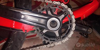Vendo mtb full ghost kato 27.5 misura L anno 2022 Movimento centrale appena revisionato con cuscinetti nuovi schermati antipolvere Normali segni di usura, monocorona T30 Shimano (T32 originale compresa) post. 11x50 12V, biammortizzata con 140mm di corsa anteriore e posteriore , sellino telescopico,disco davanti maggiorato a 203mm regalo :coprisella in gel, banda antiforatura alle ruote già montate, ciclocomputer nuovo appena montato(da anche i gradi centigradi) un paio di guanti da bici nuovi,porta borraccia montato, coppia pastiglie freni nuove, una camera d'aria e pedali, pellicolata. Io sono alto 178 cm e mi trovo benissimo... Anche se è 27.5! ATTENZIONE: prezzo indicato inteso con bici originale... Se volete i dischi oro il manubrio oro è corona da 30 denti il prezzo sale a 950 euro. Non rispondo ad offerte assurde No lavori da fare e pronta all uso. Non spedisco grazie.