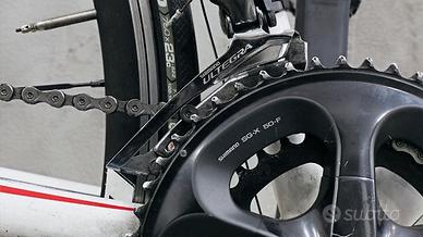 - Componenti: Shimano Ultegra (freni, leve, cassetta 11-28 10v, guarnitura SG-X 50/34, deragliatori, comandi cambio)