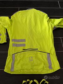 Giacca da ciclismo con inserti ad alta visibilità. - Maniche lunghe. - Zip trontale. - Polsini elasticizzati. - Dettagli riflettenti sulle maniche e sul petto. - Include un paio di guanti abbinati. - taglia L