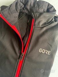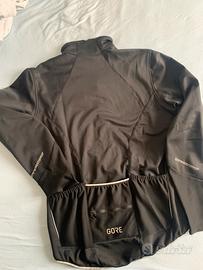 Giacca termica Gore C5 Windstopper. Taglia L. Perfetta, usata pochissimo. Nessun difetto! Ideale sia in bici da corsa, che escursioni in mtb. Antivento, idrorepellente e traspirante. La giacca Gore C5 Windstopper Thermo Trail blocca completamente il vento, garantisce una ventilazione traspirante e respinge l'umidità dalla superficie. La fodera all'interno della giacca è in pile, collo alto e aderente, cerniera a tutta lunghezza, cuciture piatte all'interno della giacca, loghi e profili riflettenti sulla giacca x migliorare la tua visibilità. Due tasche applicate sul retro della giacca, più una piccola con cerniera. Due cerniere di ventilazione frontali con tasche integrate. Elastico antiscivolo sull'orlo inferiore.