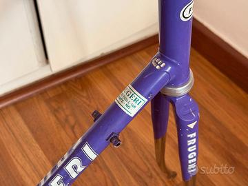 Gianni Motta Personal 2001r Fly 60x58. Acciaio Columbus SLX Profilato con sezione stellata. Il telaio era prodotto da Rossin con le stesse tubazioni utilizzate per la Rossin Ghibli, il profilo stellato a 5 punte che ricorda le Columbus Gilco della Colnago Master. Il telaio era poi stato riverniciato da Frugeri per la squadra di triathlon di Novara. Il telaio viene venduto senza serie sterzo e movimento centrale.
