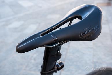 Altezza sella non regolabile. Può solo essere tagliato il telaio con per abbassarla. Al momento è perfetta per me che sono altro 188/189 cm.