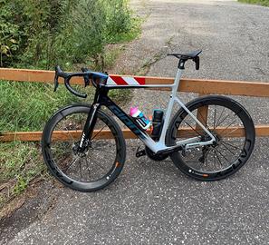 Gruppo Durace 12v con potenziometro. Rapporti 52/36 e 11-34 al posteriore. Ruote CADEX Ultra50 Tubeless Continental GP5000STR. Piccoli segni di normale utilizzo, evidenzio solo un piccolo distacco di vernice ripristinato con un velo di trasparente come da foto documentata. Bici sempre tenuta in casa e tagliandata. Portaborraccia e pedali inclusi. Altezza sella 76cm rilevata da movimento centrale. Attacco manubrio 100mm, piega 42mm. 3 spessori da 1cm sotto attacco + 1 cm sopra attacco per tutte le regolazioni del caso.