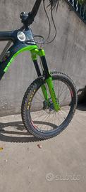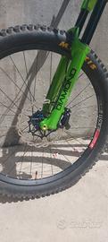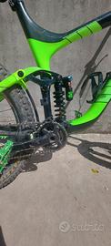 Praticamente nuova. Tutti i cuscinetti sono stati cambiati tranne quelli della serie sterzo, il mozzo posteriore e il pacco pignoni sono nuovi, freni in perfette condizioni, i dischi dei freni sono nuovi, tutti i raggi sono stati messi nuovi, il telaio presenta pochissimi graffi, non ci sono segni di crepe o ammaccature, ha montato il reggisella telescopico originale giant, la sella è nuova, forcelle e ammortizzatori sono stati revisionati e funzionano perfettamente, copertoni non troppo usurati.
