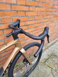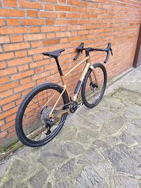 In qualità di rivenditore autorizzato, disponibile in pronta consegna in tg. M gravel Giant in carbonio nella colorazione gold come in foto.