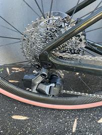 La bicicletta è del 2022 in taglia M/L Tenuta bene solo segni di usare sulle pedivelle a causa del normale utilizzo in sterrato. Trasmissione nuova (catena-corona-cassetta) Gomme nuove Pirelli Cinturato M 700x45 Gruppo Sram Rival XPLR AXS 1x12 40 10/44 Ruote Mavic in carbonio