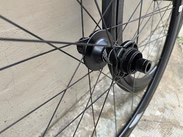 Vendo ruote in carbonio hooked Giant SLR 1 per bici da strada per freni a disco ma compatibili anche su gravel/ciclocross Condizioni ottime, nessun difetto Adatte a perni passanti 12-100 e 12-142 mm Compatibile con pacco pignoni Shimano 10/11/12 velocità, Sram 10/11 velocità o anche SRAM NX/SX 12 Profilo 30 mm Canale interno da 17 mm Possibile montarla con copertoni o con tubeless ready, nastro già installato Attacco freni a disco Centerlock (ghiere non incluse) Peso 1520 grammi con nastro Prezzo ruote nude 400 euro. Prezzo + 20 per copertoni Continental da 25 e camere d'aria Spedizione disponibile in tutta Italia. Disponibile a Torino e Chivasso. Posso fornire distanziali per il corpetto. Su richiesta posso fornire altre foto. No perditempo. No scambio. perno disk disco dischi disch cerchi ruota cerchio anteriore posteriore gravel ciclocross passante perni passanti 700 700c 28 622 19c E-Thru tlr HGR TA CL Clincher propel tcr defy brake DBL Dynamic balanced lacing