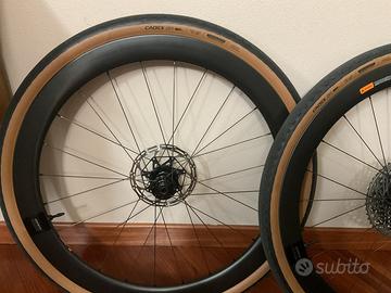 Vendo per inutilizzo ruote in carbonio 5 uscite massimo su strada Completo di copertoni Cadex ar tubeless 700x40 con altrettante uscite (79 euro/cad) Corpetto XD SRAM Dischi e cassetta NON inclusi